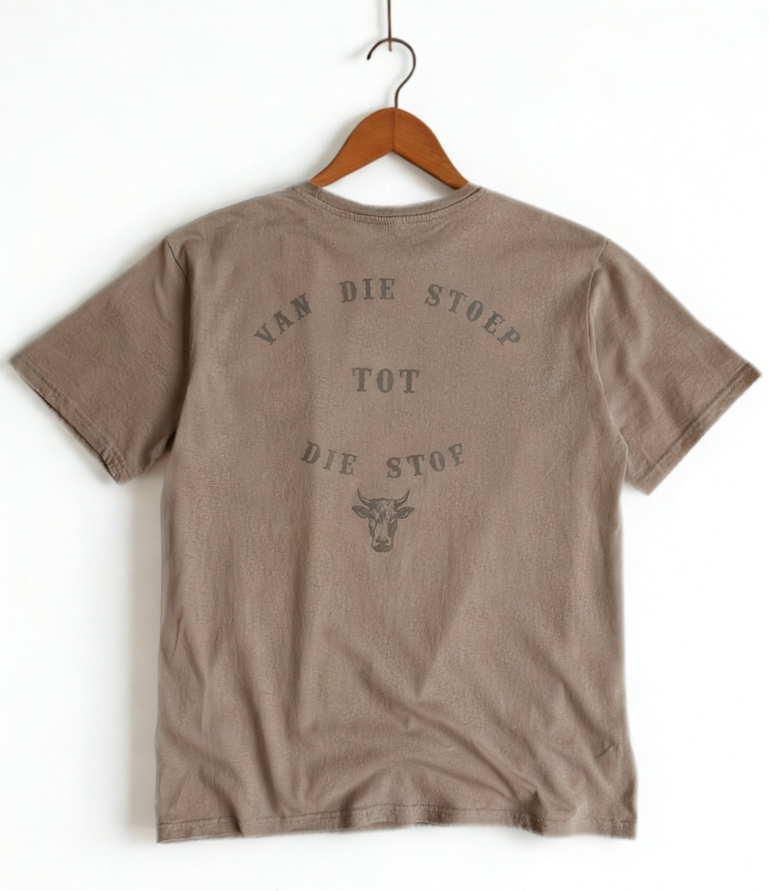 As jy ooit gewonder het hoe dit voel om soos ’n plaasbul te lyk sonder om eintlik jou voete vol mis te trap – hier’s jou kans. Hierdie T-hemp is unisex, so almal kan nou ’n bietjie plaas-cred steel.