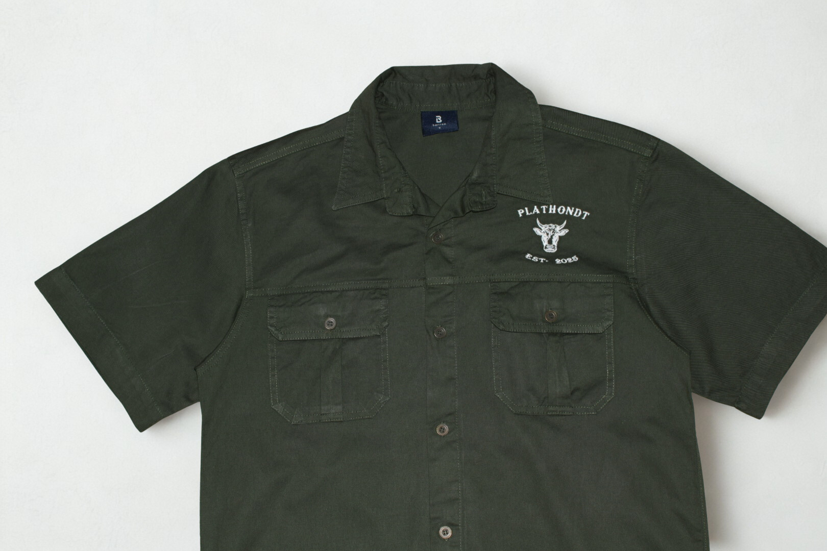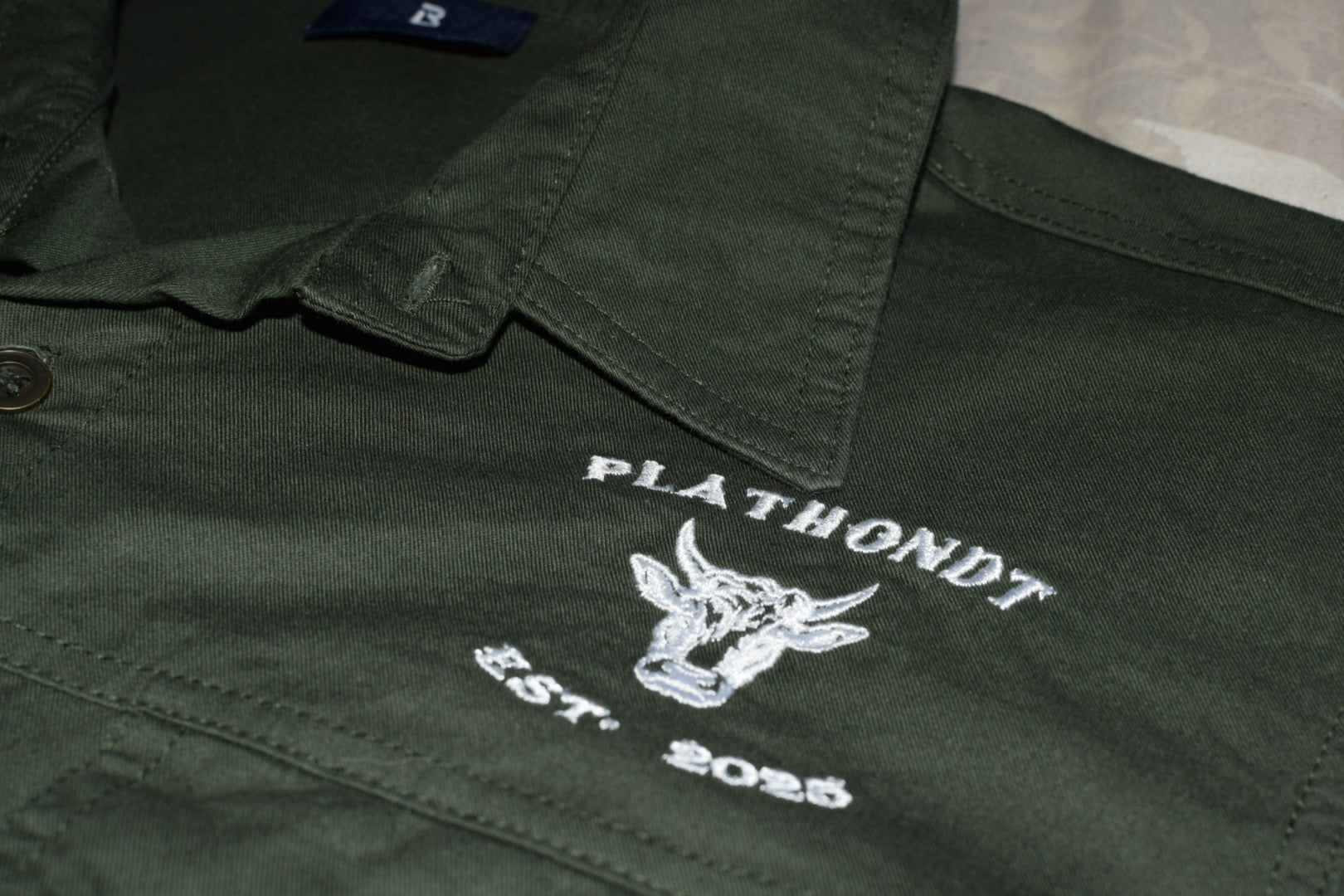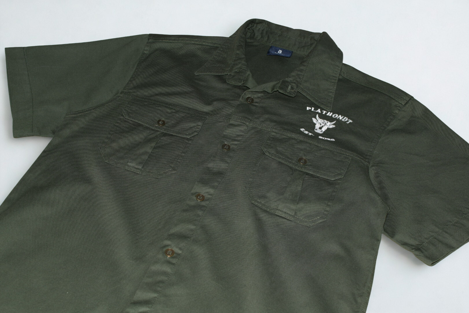 Die geborduurde Plathondt-bul logo en Est. 2025 detail gee die hemp ’n egte, trots-Afrikaanse karakter, terwyl die snit gemaklik genoeg bly vir lang dae in beweging.