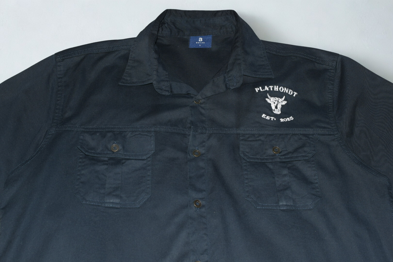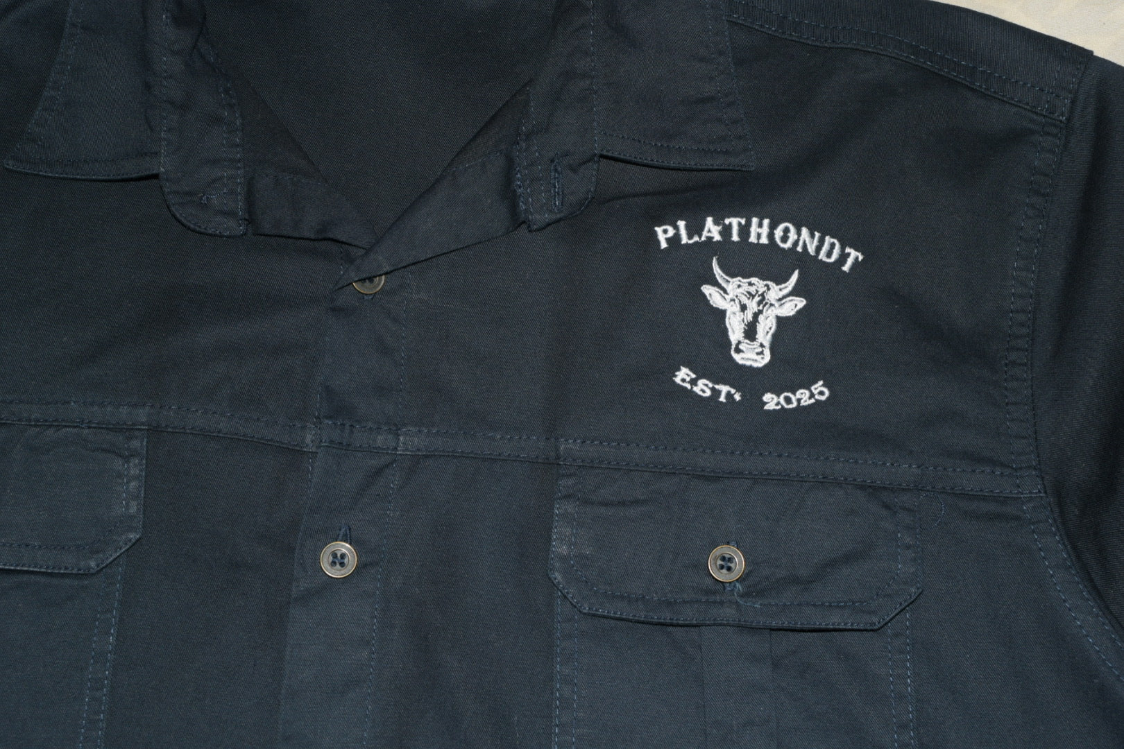 Die geborduurde Plathondt-bul logo en Est. 2025 detail gee die hemp ’n egte, trots-Afrikaanse karakter, terwyl die snit gemaklik genoeg bly vir lang dae in beweging.